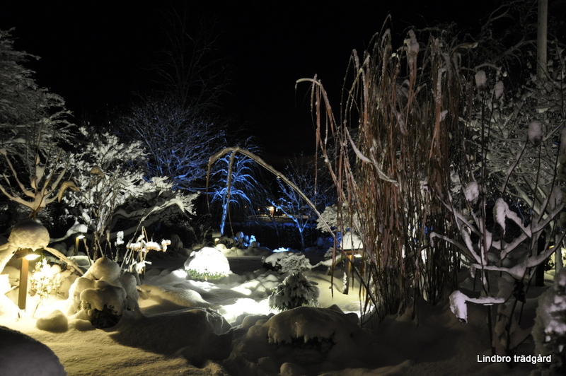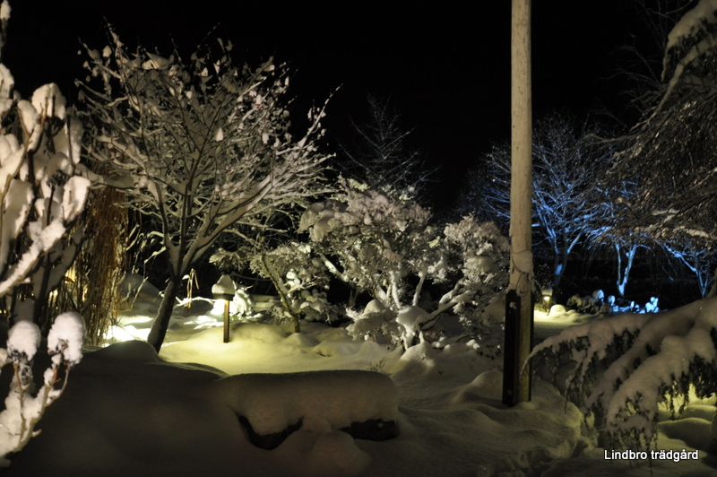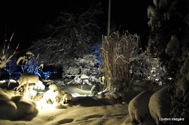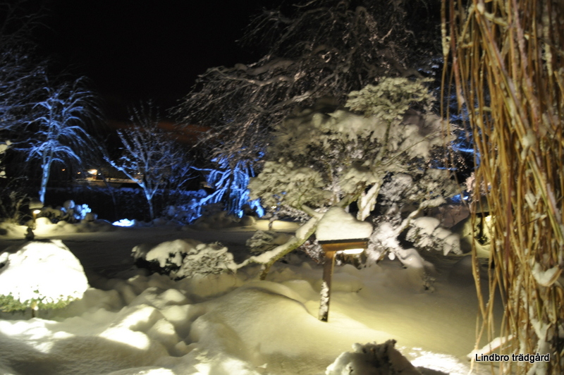 Snö har det kommit i veckan och bäddat in trädgården med ett vitt täcke. Passade på i fredags kväll att ta lite nya bilder. ”Det onda har vingar, det goda rör sig med snigelfart” Hälsningar Birgitta o Håkan